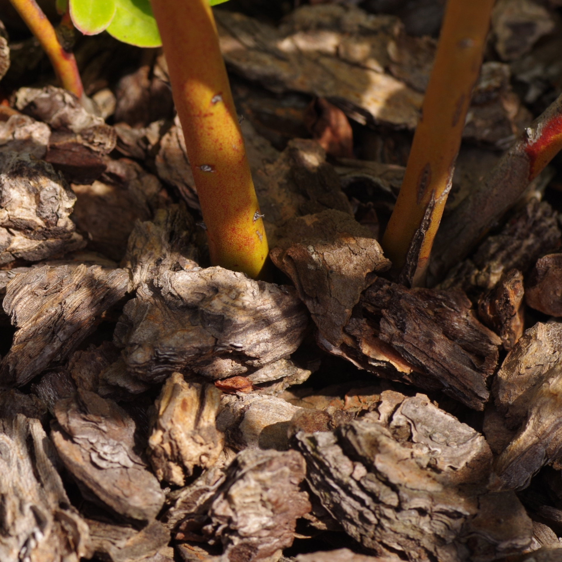 根元にはバークチップやワラを敷き、凍結を防ぎましょう。