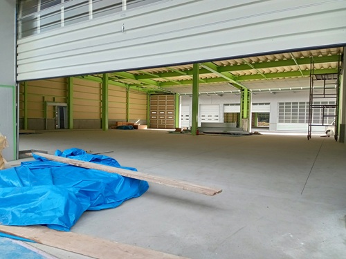 体育館みたいに広い❗❗❗会社カラーのグリーンの鉄骨がアクセントになっていてイイですね~👍