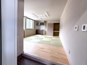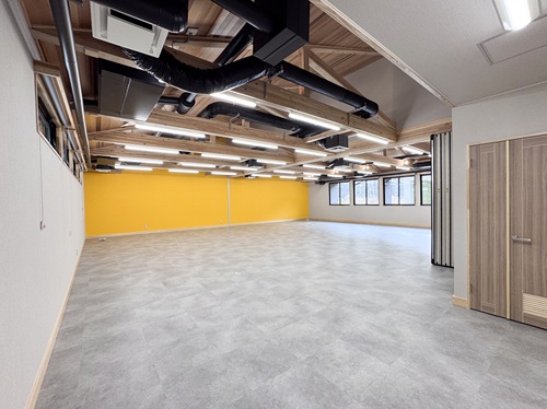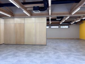 写真のように間仕切りを動かして、2つ部屋に区切ることも可能です。